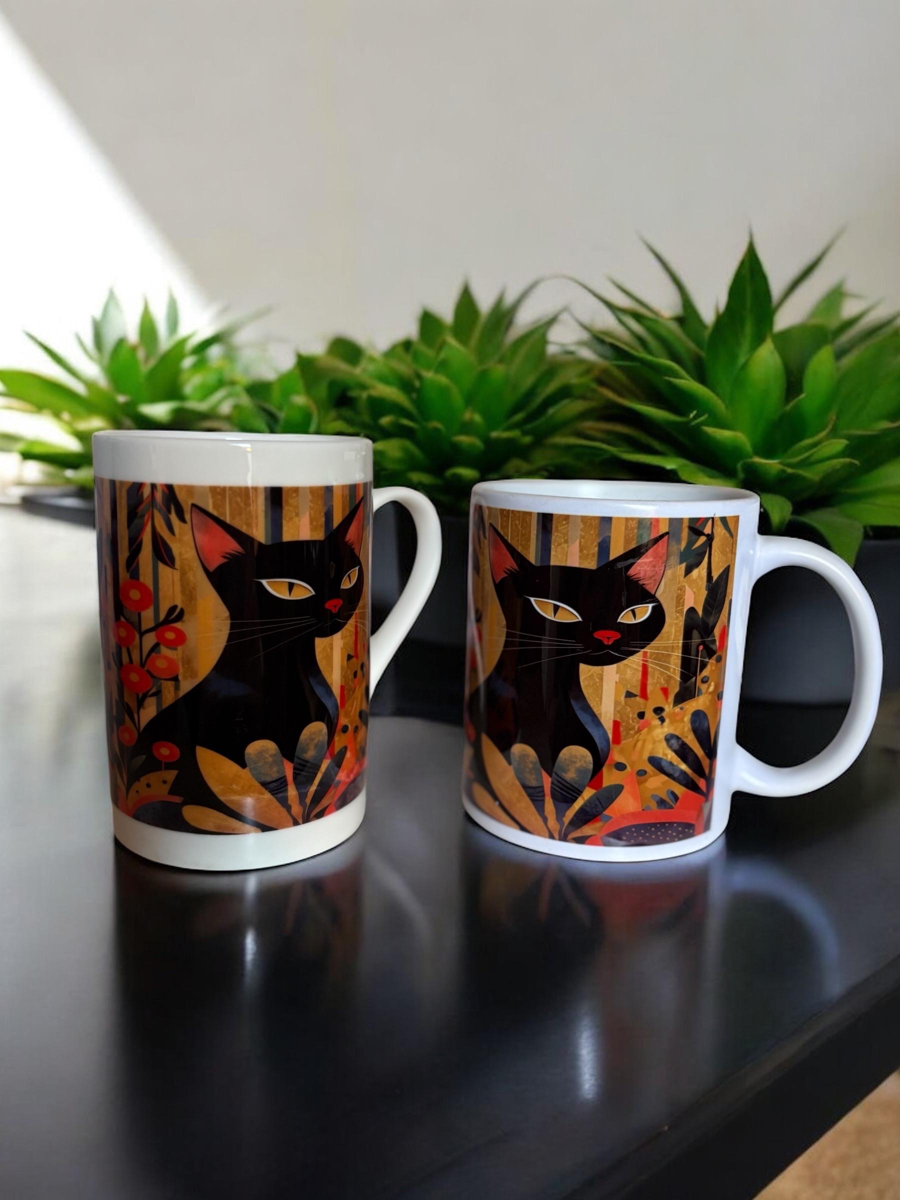 Bring a touch of artistic charm to your morning coffee or tea with this stunning painted cat mug. Featuring a beautifully illustrated cat in rich, deep tones, this elegant mug is perfect for cat enthusiasts who appreciate artistry and quality in their everyday essentials.
