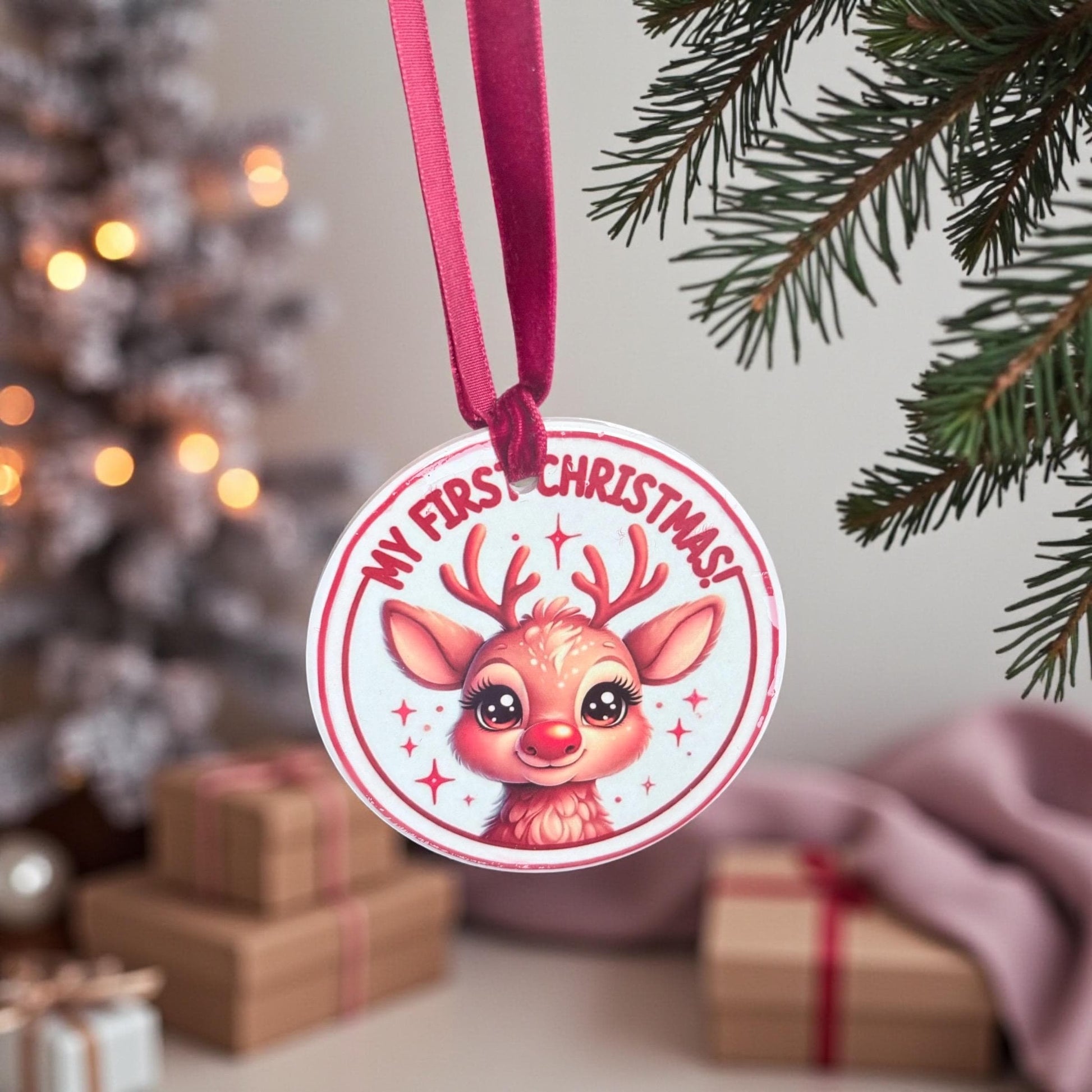 Personalised 'My First Christmas' Ornament - Reindeer Ceramic Keepsake