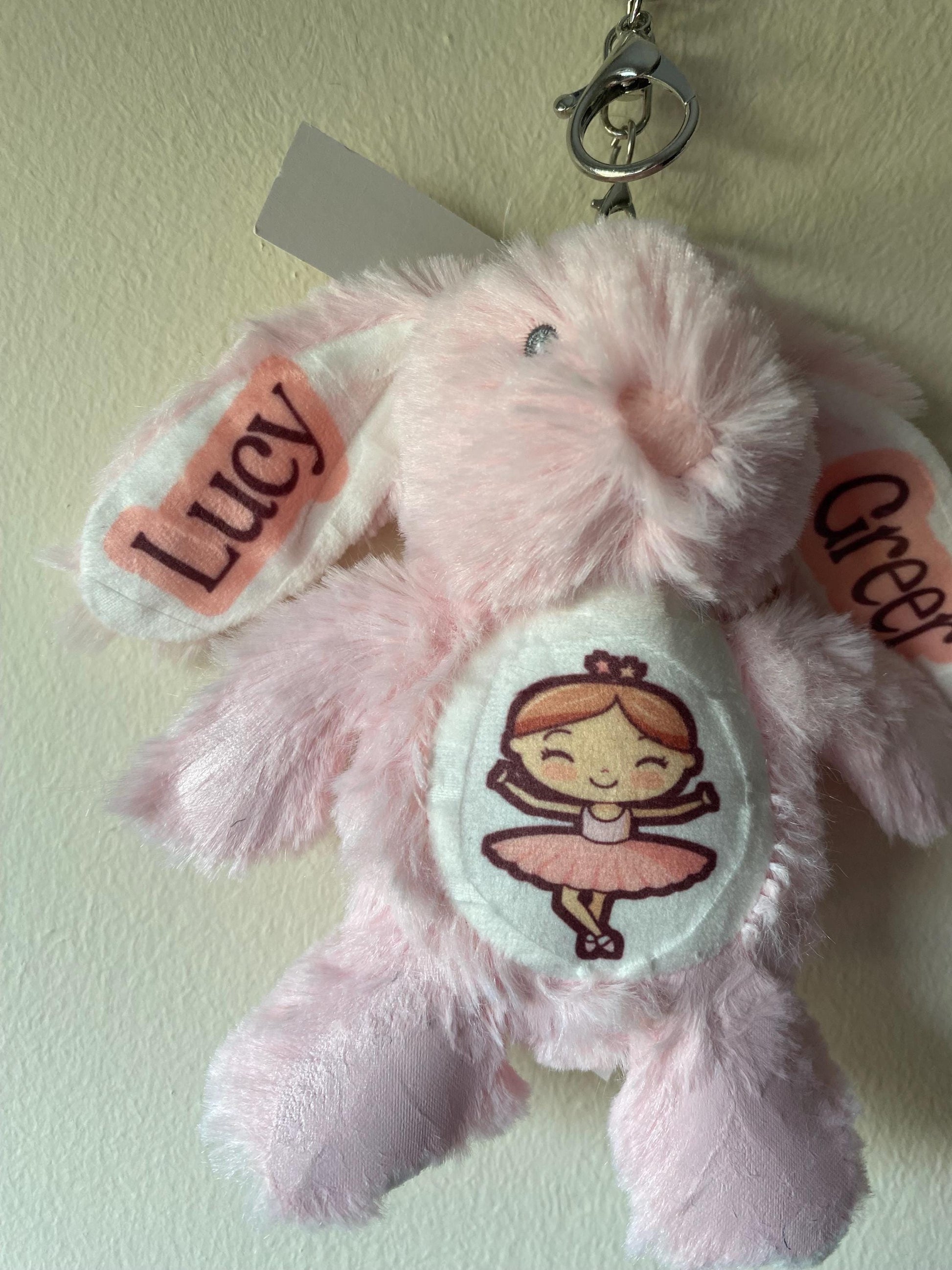 Personalised Pink Bunny Ballerina Keychain: Plush Bag Charm